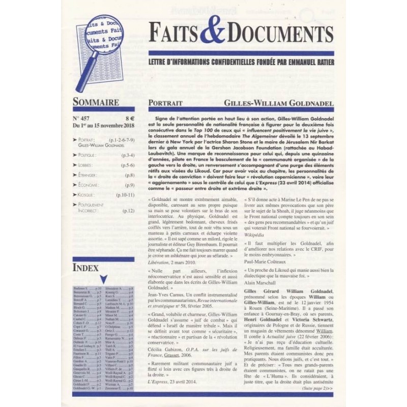 Faits & Documents n°457 - Du 1er au 15 novembre 2018
