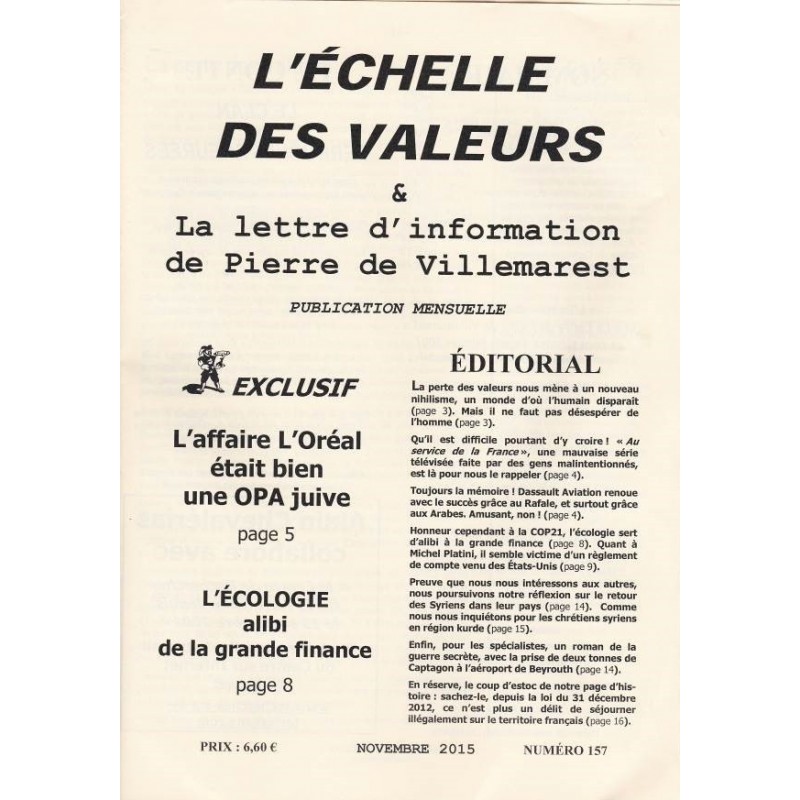 L'échelle des valeurs - novembre 2015