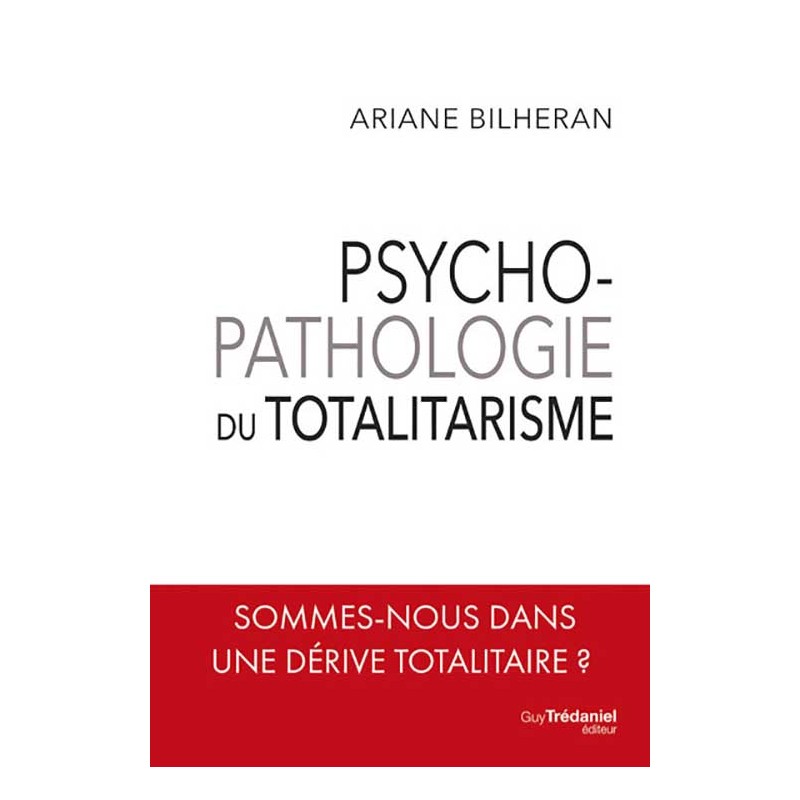 « Le totalitarisme n'a jamais été complètement envisagé sous l'angle d'une maladie de civilisation, une pathologie collective délirante, du côté de la psychopathologie, avec les ramifications qui s'ensuivent. C'est ce qu'Ariane Bilheran propose, avec cet essai psychologique et philosophique sur le pouvoir total en politique. Elle démontre que le totalitarisme est un système paranoïaque dans lequel les pathologies perverses, sadiques, transgressives et psychopathes sont à l'honneur.