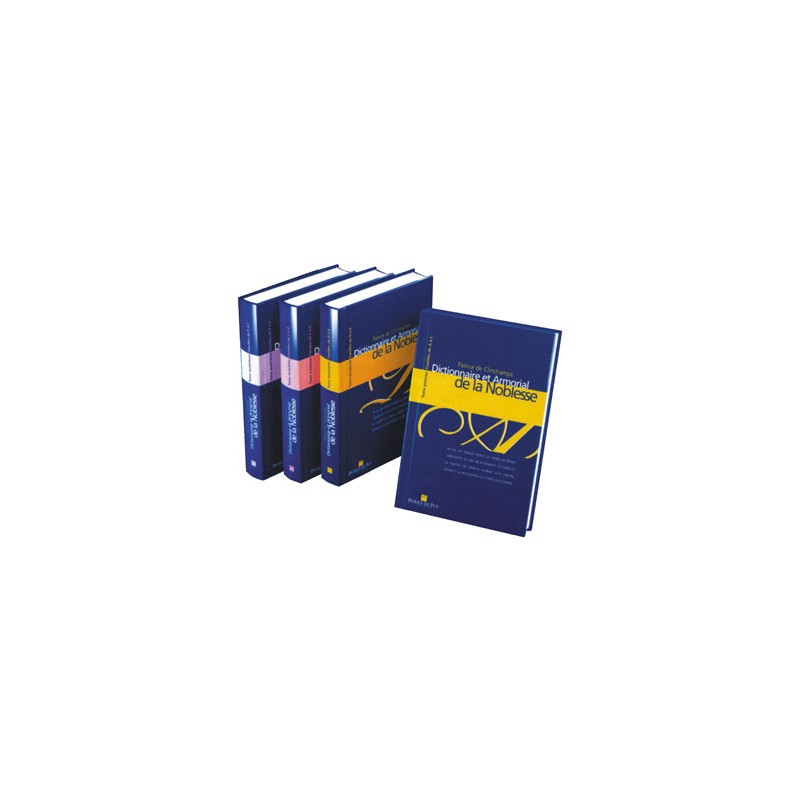 « Ce travail rassemble pour la première fois en un même ouvrage toutes les informations connues sur les familles françaises nobles ou titrées subsistantes en ce début du 3e millénaire. Des anoblis ou titrés d’hier, ne descendent aujourd’hui guère plus de trois mille familles subsistantes. Affirmer en être ne suffit pas ; s’en donner les apparences non plus. La noblesse est une qualité qui doit être prouvée par ceux qui prétendent la posséder. C’est la raison d’être de ce travail. Sur le sujet, il a existé d’excellents ouvrages. Ils ont été grandement mis à profit. Prendre le meilleur de chacun pour construire un ouvrage complet, premier « Dictionnaire et armorial de la noblesse », tel a été le parti pris de l’auteur. Pour chacune de ces familles sont ici décrites et reproduites ses armes ancestrales, est donnée sa province d’origine, rappelée la qualité de ses membres, suivie la filiation connue et prouvée de père en fils, sont indiquées les dates des jugements de maintenue de noblesse dont elle a pu être l’objet, soulignés les faits et gestes remarquables des plus illustres des siens, données les alliances contractées avec les familles nobles ou titrées également subsistantes, précisés les titres de noblesse qui peuvent être régulièrement portés, est donnée une bibliographie sommaire. Au total, ce travail compte quatre volumes et plus de 1 700 pages. Chacun constitue séparément un véritable ouvrage de prestige, au tirage limité, riche des dessins originaux des armes imprimés en couleurs. »