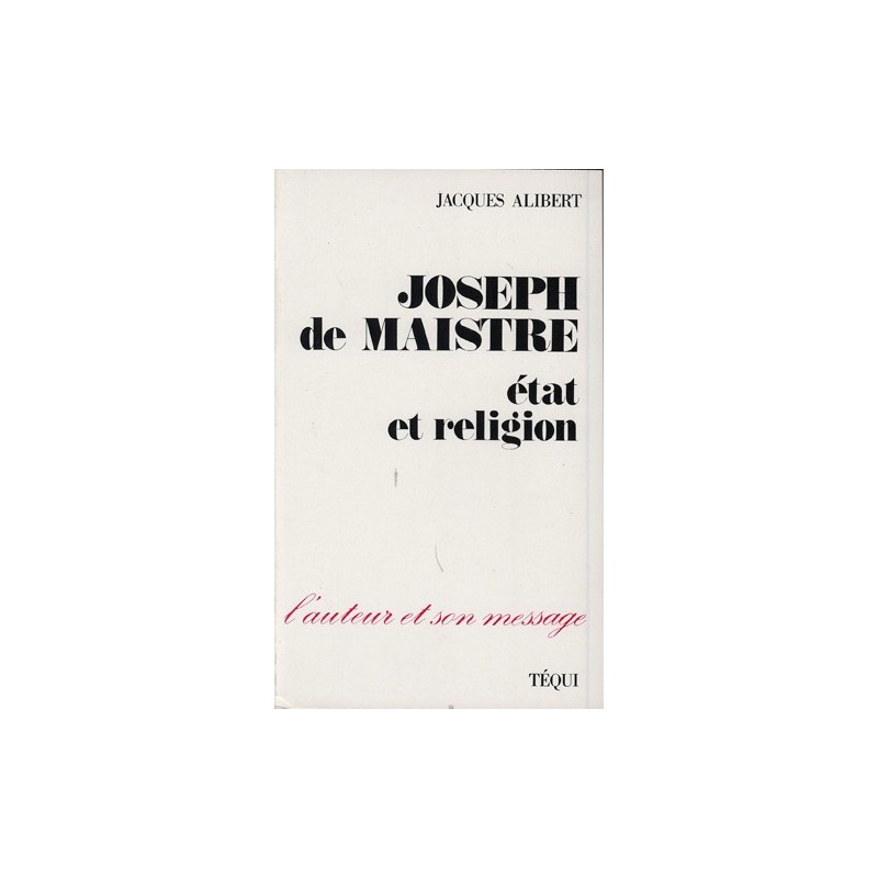 Joseph de Maistre : état et religion - Jacques Alibert